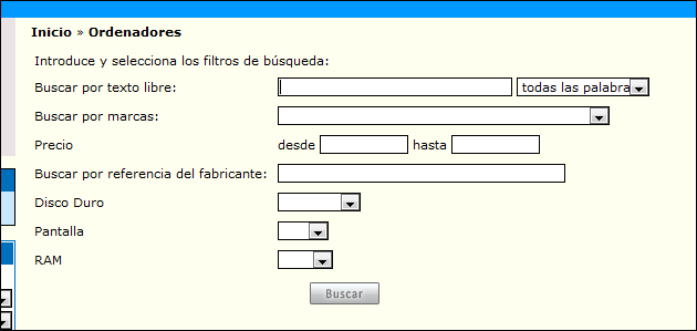 una tienda de informática, puede que interese crear un buscador