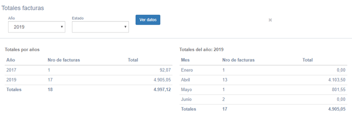 El objetivo de esta pantalla es obtener un listado de los facturas emitidas por años y meses permitiendo filtrar por el estado de la factura.