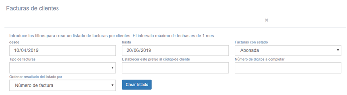 pantalla es obtener un listado con el sumatorio de las facturas de clientes filtrados