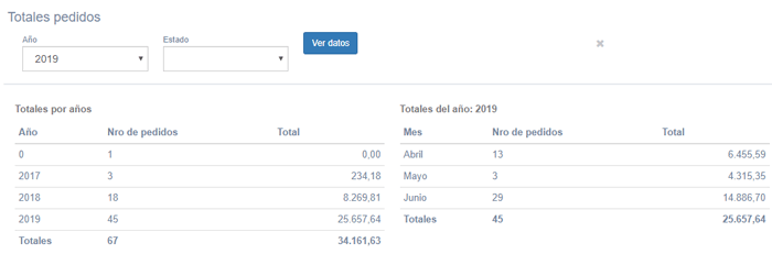 El objetivo de esta pantalla es obtener un listado de los pedidos creados por años y meses permitiendo filtrar por el estado del pedido.